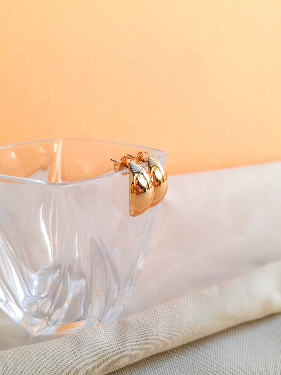 Um par de brincos de argolas conforme descrição. As fotos presentes são inspirações de uso, não acompanha na embalagem demais acessórios.